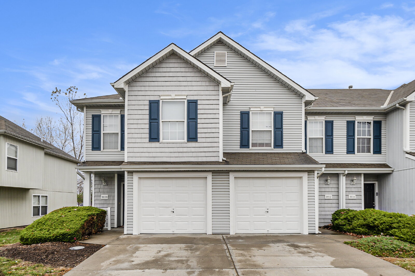 Spacious 2-story townhome in Tiffany Hills, conveniently located in Kansas City's Northland just minutes from Zona Rosa, KCI Airport, and major highways. This 2-bedroom, 2.5-bath home features a large primary suite with double sinks, full-size washer and dryer, and direct access to a one-car garage. Enjoy a private patio perfect for relaxing or entertaining. Community amenities include a pool and fitness center. Photos are of a similar unit.