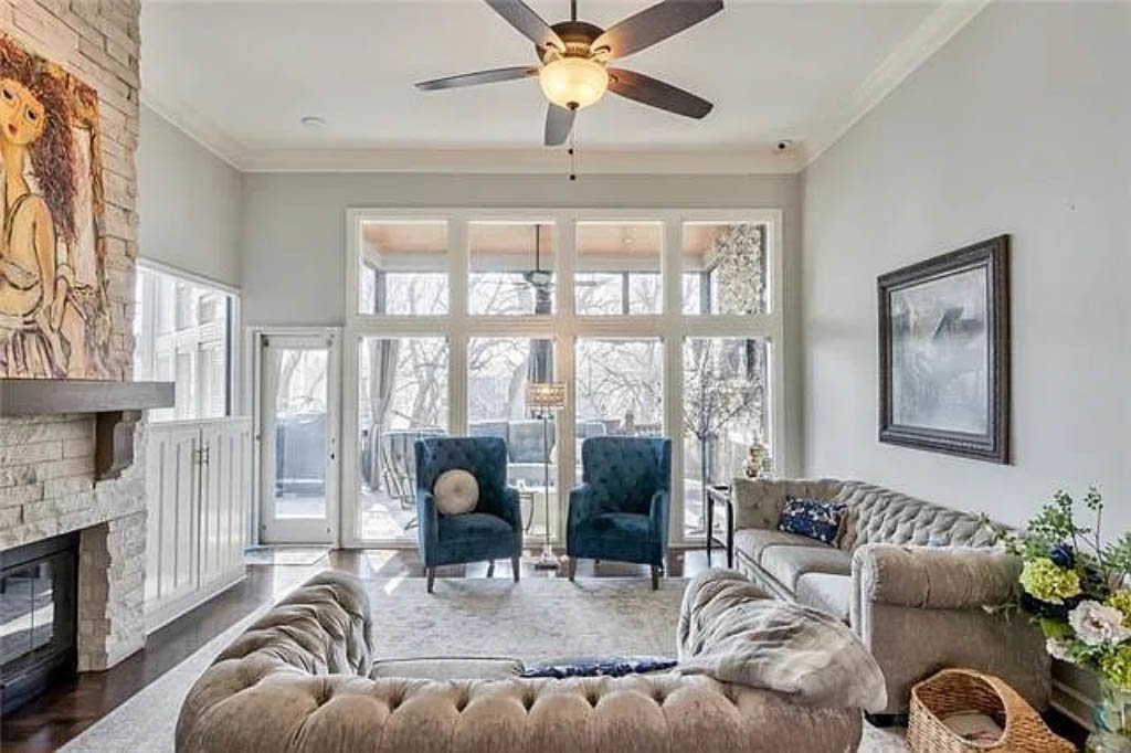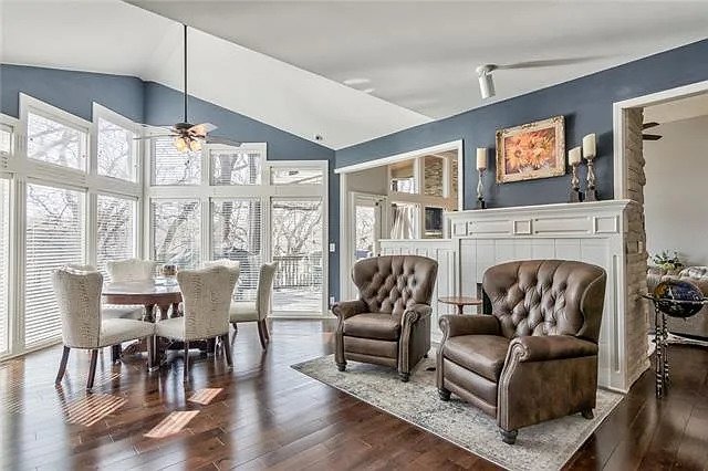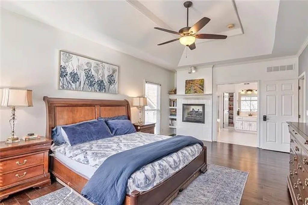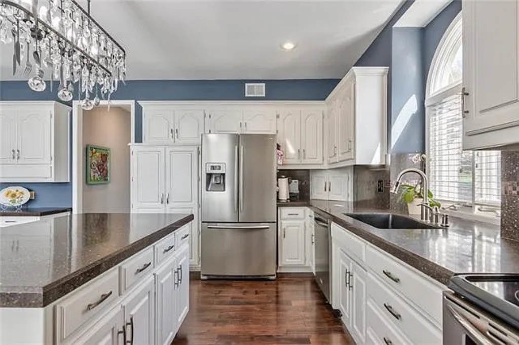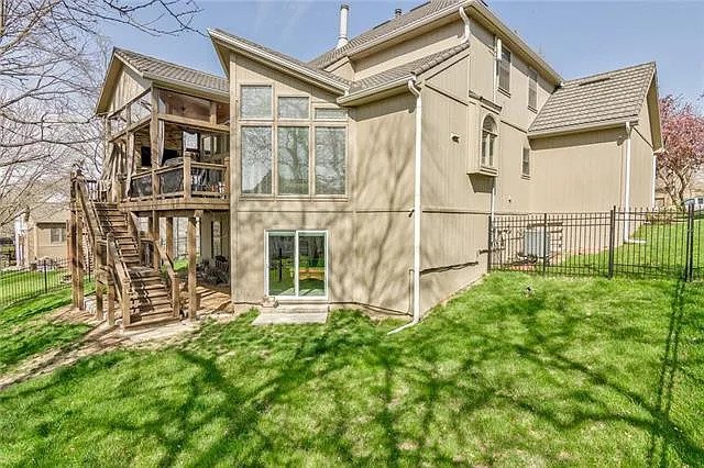 Gorgeous family home in well-established Lenexa neighborhood. Open main level has wood floors, 12’ ceilings and abundant natural light throughout. Kitchen features an island, SS appliances, double ovens and cabinets galore. Large laundry/mud room steps away from the 3-car garage. Master bedroom is on the main floor w/fireplace, large bathroom and walk in closet. Upstairs has three large bedrooms and two full baths. Lower level walk-out has 5th non-confirming bedroom/office as well as a full bath. Wet bar and pool table complete the rec space perfect for entertaining! Two doors access the backyard with a new fence.. Covered deck off living room with ceiling fans and a place for a large TV.