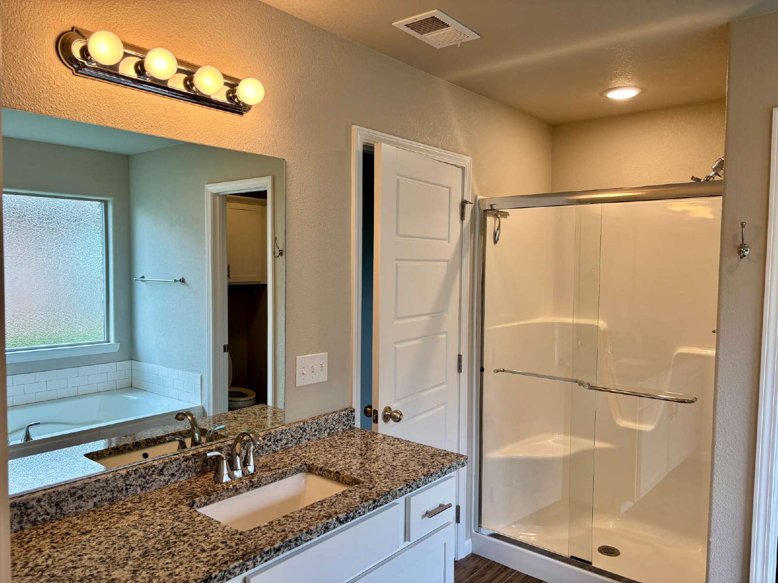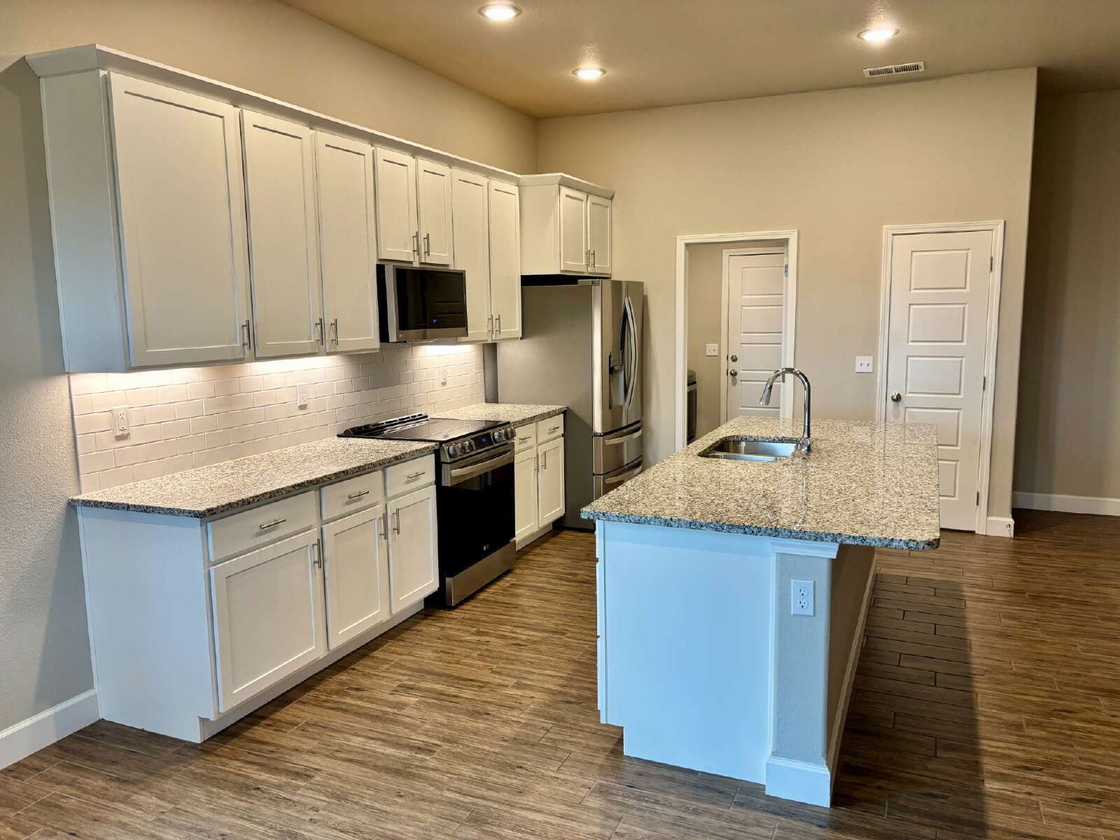 Marie floor plan available for March 2026 move-in! Highly sought after neighborhood in Western Shawnee, Legacy Crossing. 2022 built slab home with 3 spacious bedrooms & 2 bathrooms. Spacious kitchen with plenty of counter & cabinet space. Upgraded LG kitchen appliances. West facing screened patio perfect for sunsets. Granite counter tops. Back and side yard landscaping added for additional privacy. Large dining is perfect for hosting guests with back patio access. Two car garage. Short drive to the Lenexa City Center and K-7/10, I-435, I-70 access.