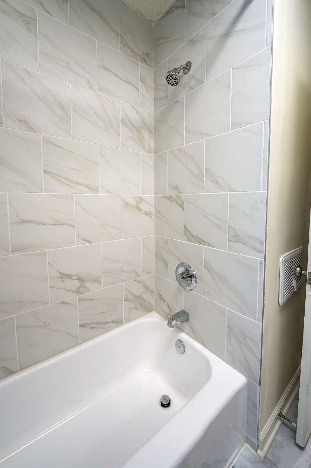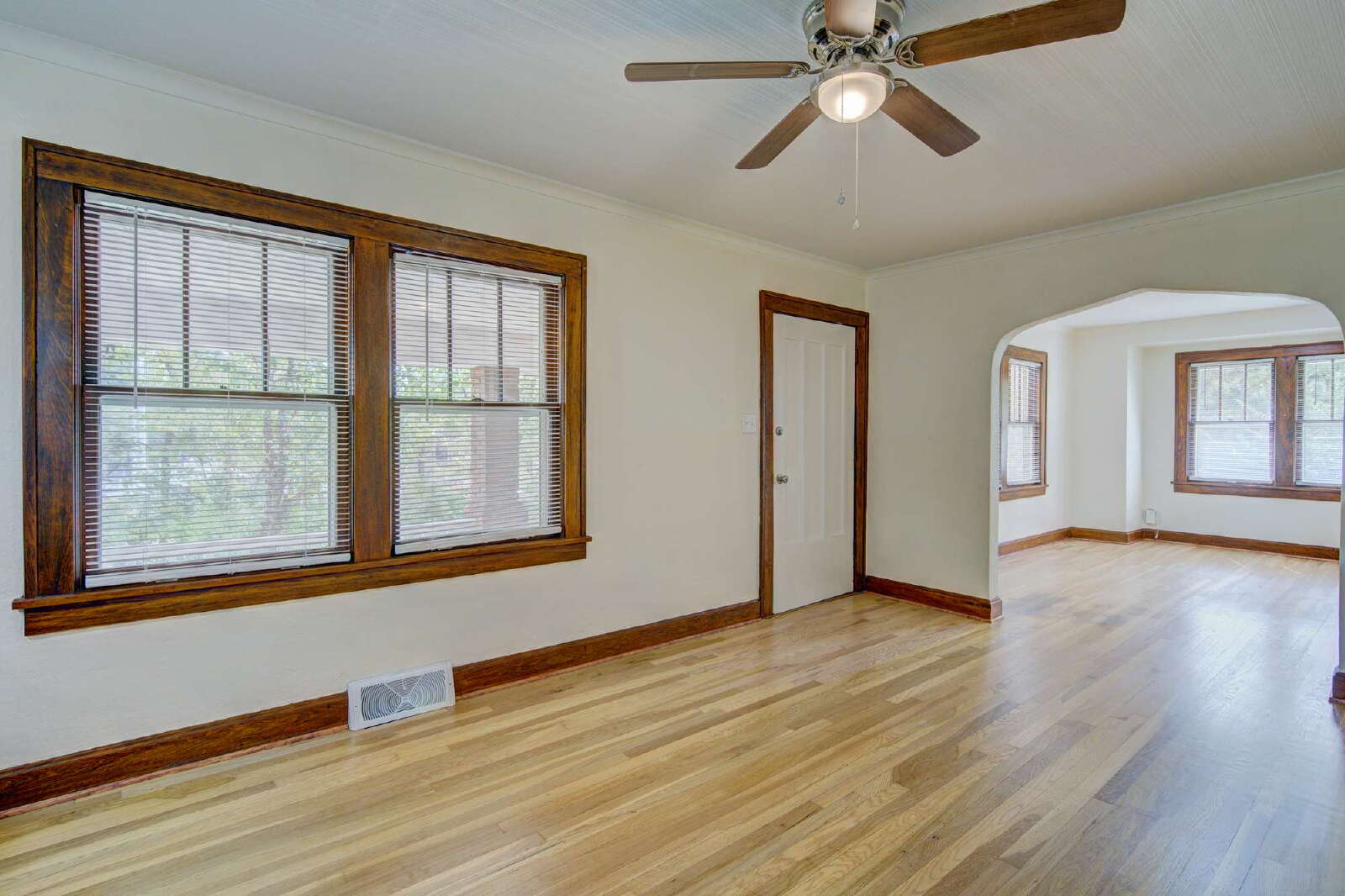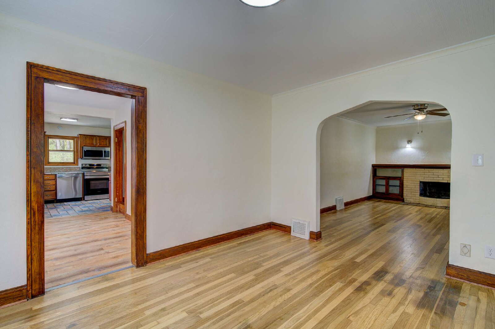 access to shopping, dining, and the city. Inside features refinished hardwood floors, fresh paint, updated trim, and two remodeled bathrooms with tiled showers,